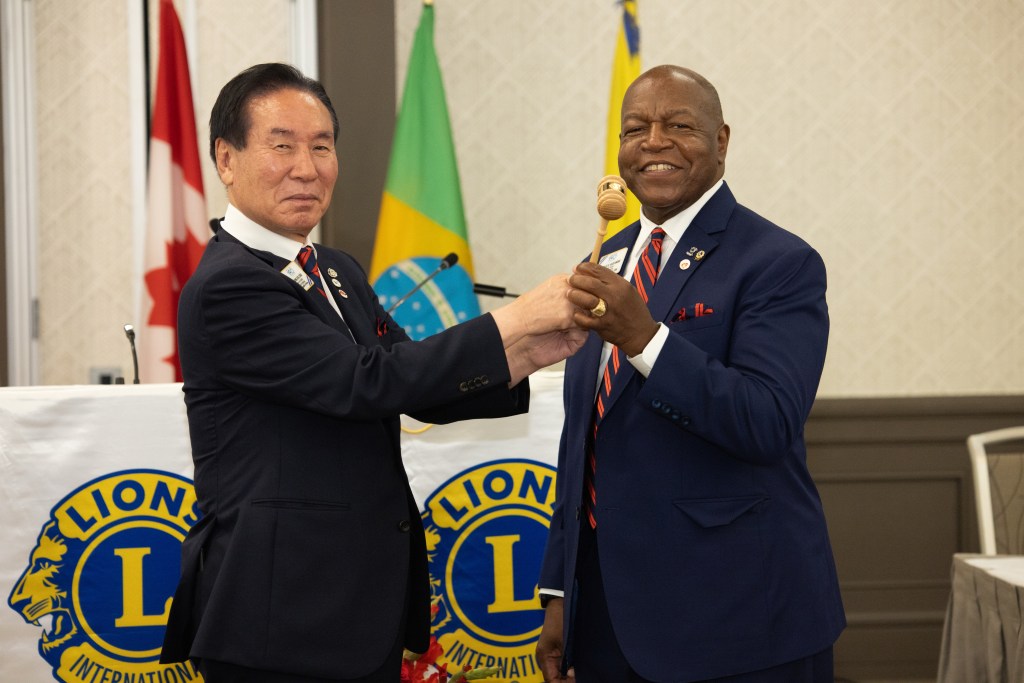 In 2021, as Lions International was emerging from the most acute stages of COVID-19 pandemic, Lion Douglas X. Alexander of New York, USA, was installed as President of the Association. This photo records his installation as International President that was viewed live on social media because health restrictions continued to limit large groups of people from gathering in person. The 2021 Lions International Convention and officer installation was staged and broadcast live from Lions Headquarters in Oak Brook, IL.