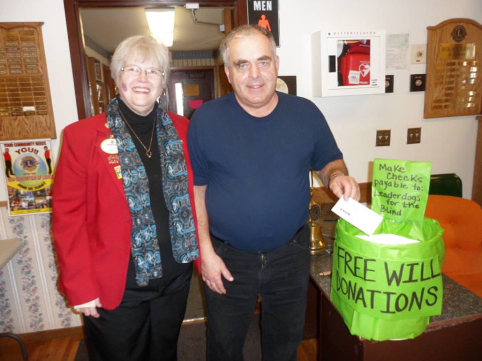1653475_803633362984179_629159421_n5NE District Governor Katherine Tweed promoted the event and greeted those who came to Horace to partake of the chili and donuts. Pictured to the left is DG Katherine and Lion Keith Zeutschel of the Horace Lions Club. Lion Keith was instrumental in making local arrangements and promoting the event. DG Katherine was enthusiastic in her response to the turnout: “This was an incredible event to support Leader Dogs and for people to understand what it means to have a service dog.  Having Zone 6A all work together on a project is exactly what we need to see.  That is, Zones working to build camaraderie, building friendships, and serving together.”