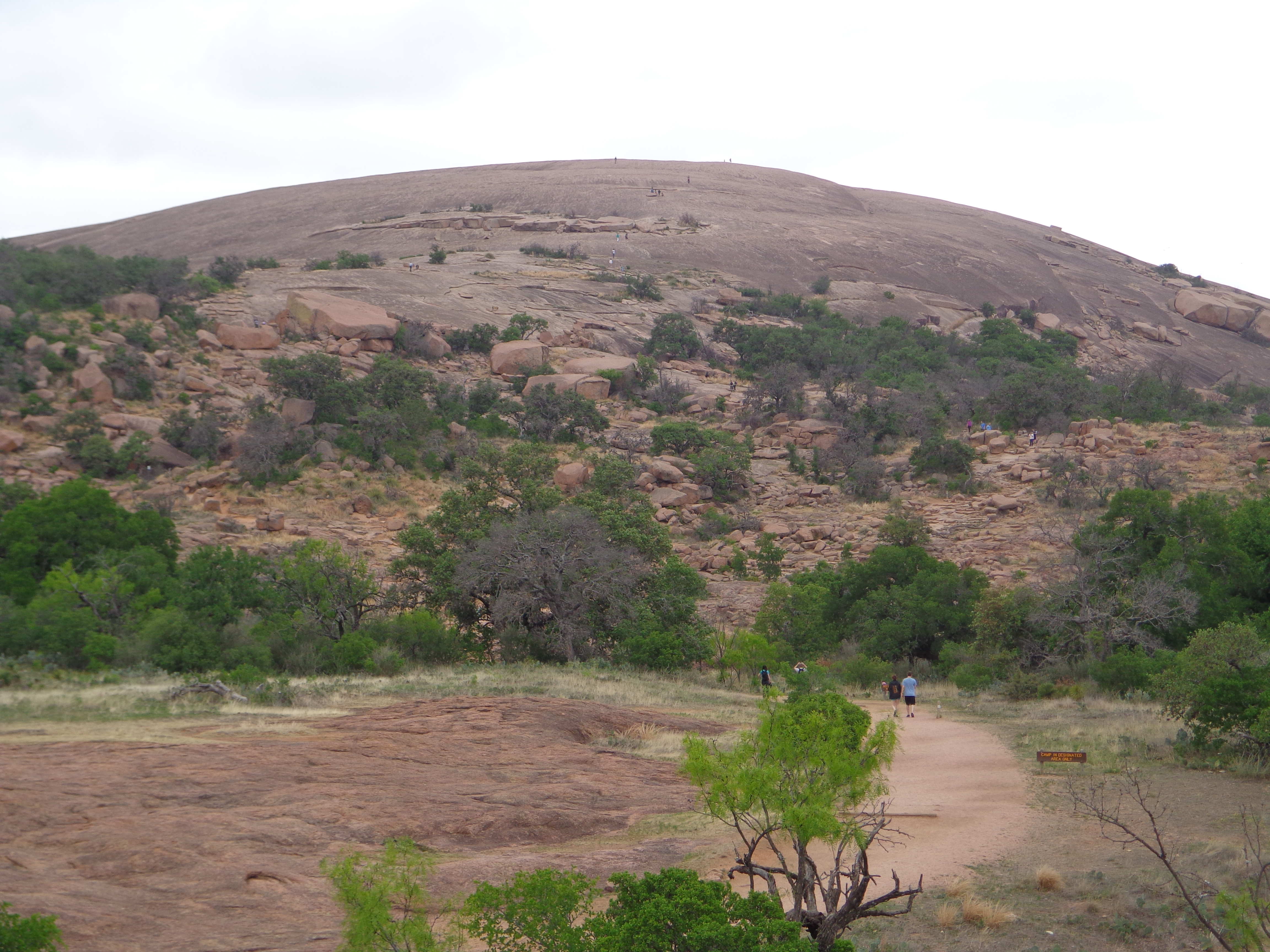 On Sunday afternoon, we decided to visit Enchanted Rock State Park, North and West of Austin. As we neared the park, we could see the focal point clearly. Enchanted Rock rises out the of ground and climbers follow trails virtually straight up the side of the rock. Step by step, we decided to make our way to the top–sometimes on a path, sometimes not–along with our grandsons and their parents.