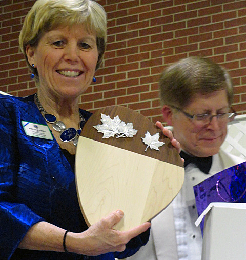 VDG Claire at the podium and winning speaker standing at the left.