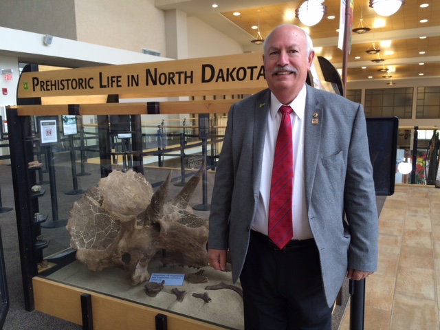 VP Bob stands among the giants at the Lewis and Clark Interpretive Center in Washburn, ND.