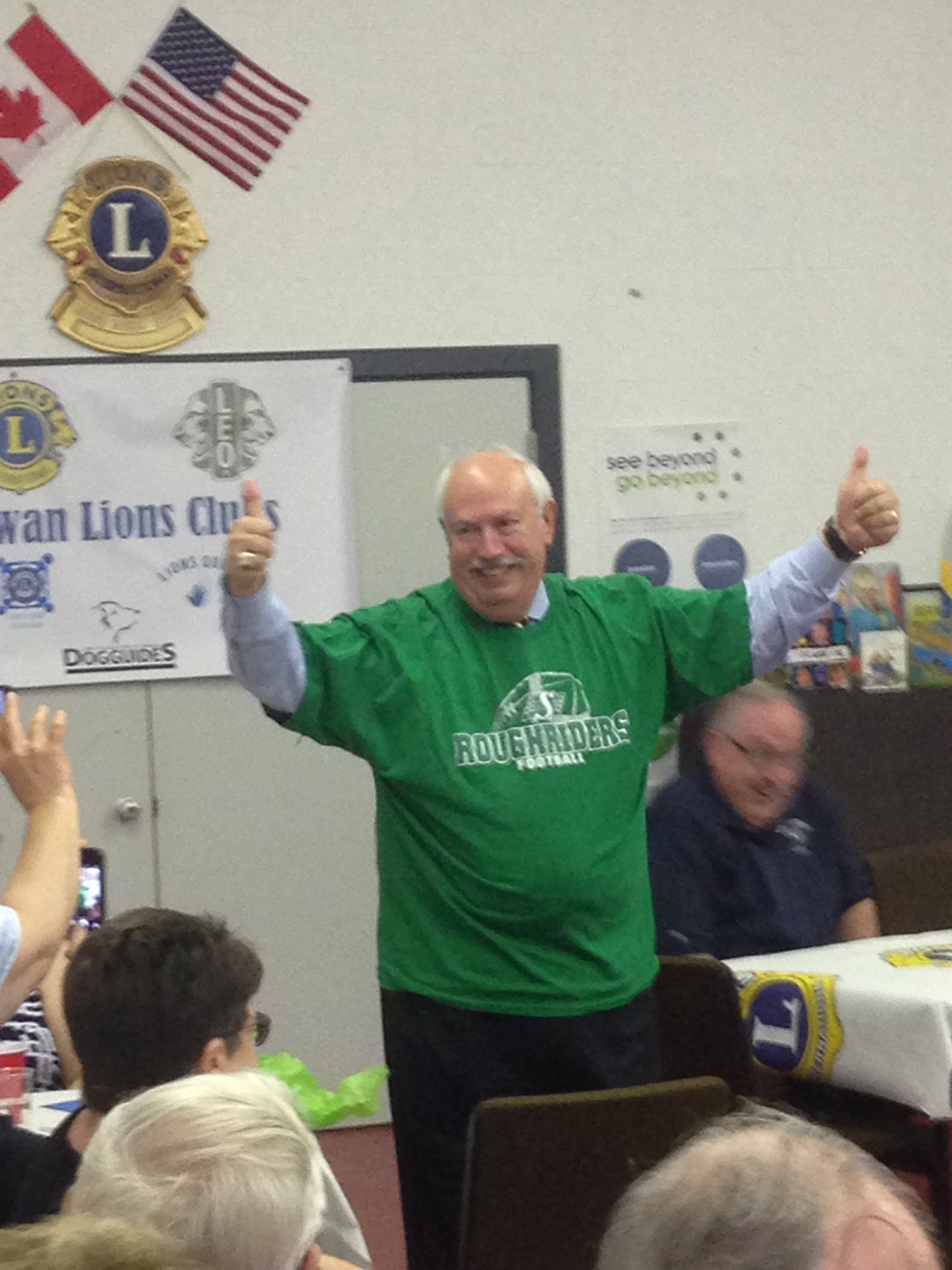 Saskatchewan Lions make VP Corlew one of the team to support the Rough Riders.