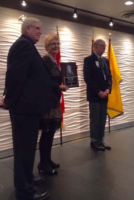PDG Marian Johnson received her HOF plaque and ring at the luncheon. Pictured here with her husband, PCC Brach Johnson (L) and ND PDG Association President Lewellyn Rustan (R).