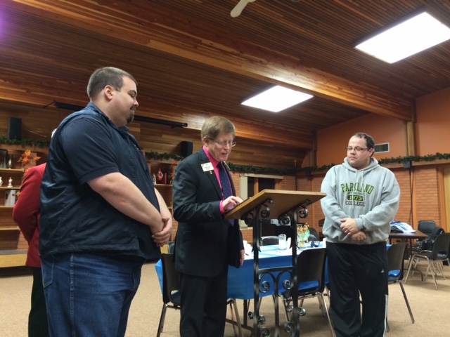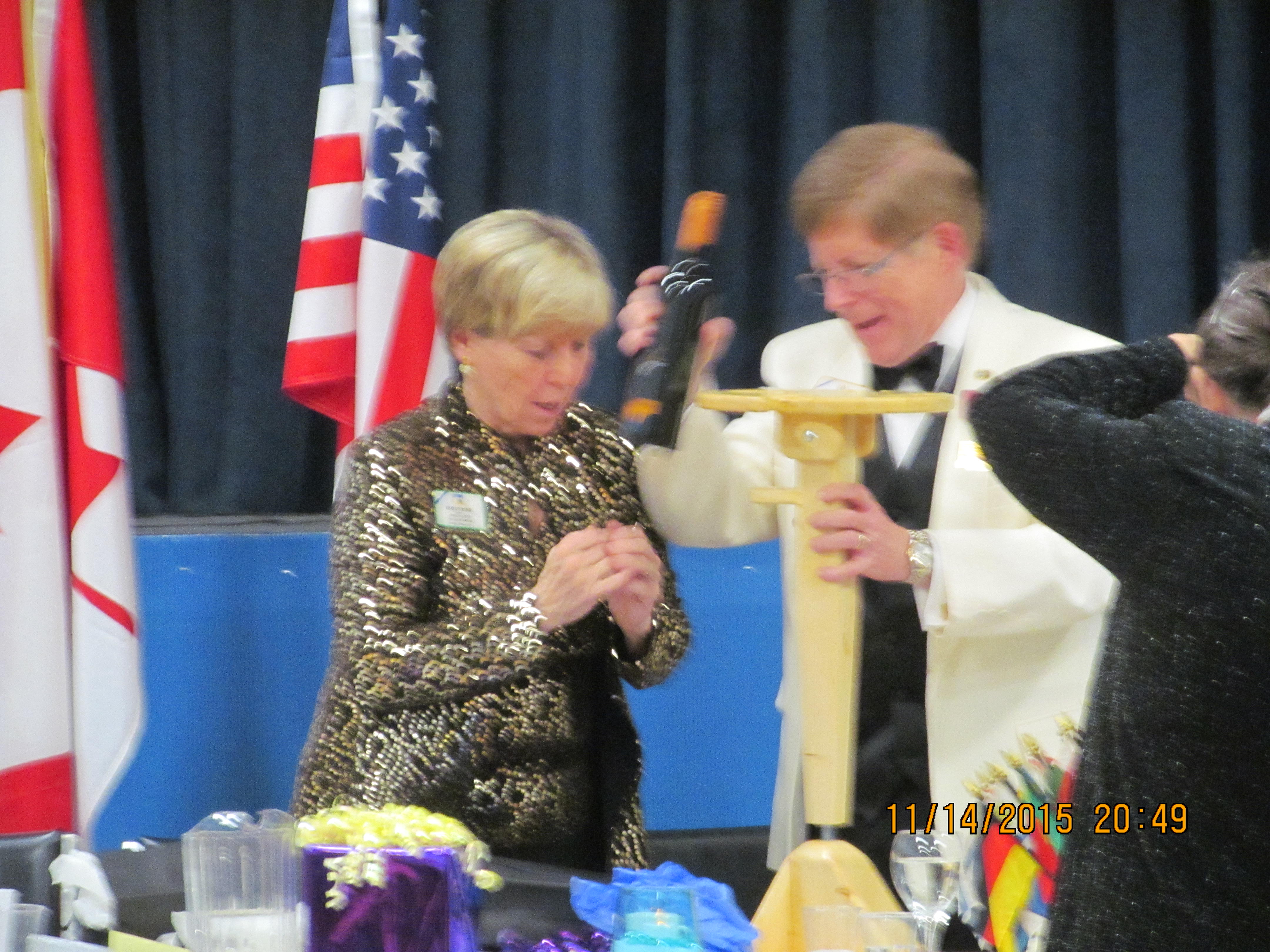 and PDG Joe Andrew presented us with a portable table perfectly handcrafted to hold a bottle of wine and two glasses. We’ll have to put that to good use on our deck once the snow melts.