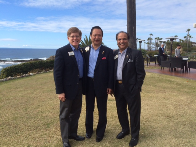 ID Robert with President Yamada and 2VP Naresh Aggarwal just before the rains came to Laguna beach.