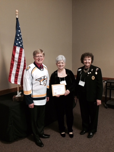New member Lion Wanda Barnes (Franklin Lions Club) with sponsor Lion Starlene Buie (Mt. Pleasant Maury County). Not pictured, Lion Tammy Daniel and her husband (sponsor) Lion Tim Daniel).