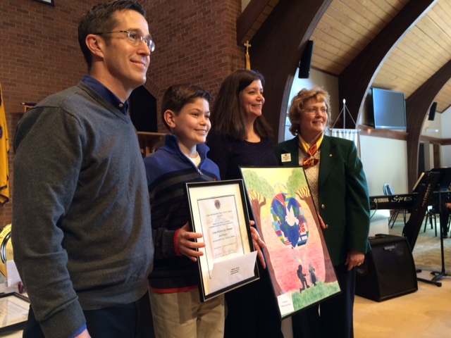 Several awards were presented, including the District and Multiple District Peace Poster Contest winner Jack Boyer pictured here with his parents, and Peace Poster Contest Chair Lion Jan Drapalik (far right). Jack’s entry is sponsored by the Lafayette Lions Club.