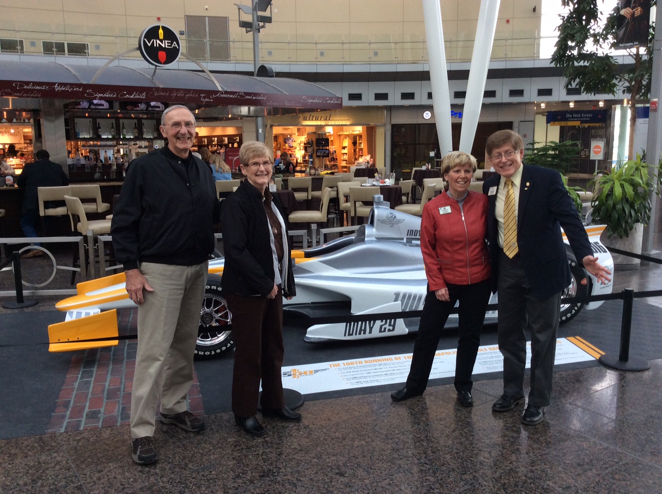 Fellow LCI Director Linda and PDG Vern Tincher, and District Governor Richard and Karen McKellar met us at the Indianapolis airport. We immediately knew we were in racing territory, and we took the opportunity to capture a photo before we were even out of the terminal.