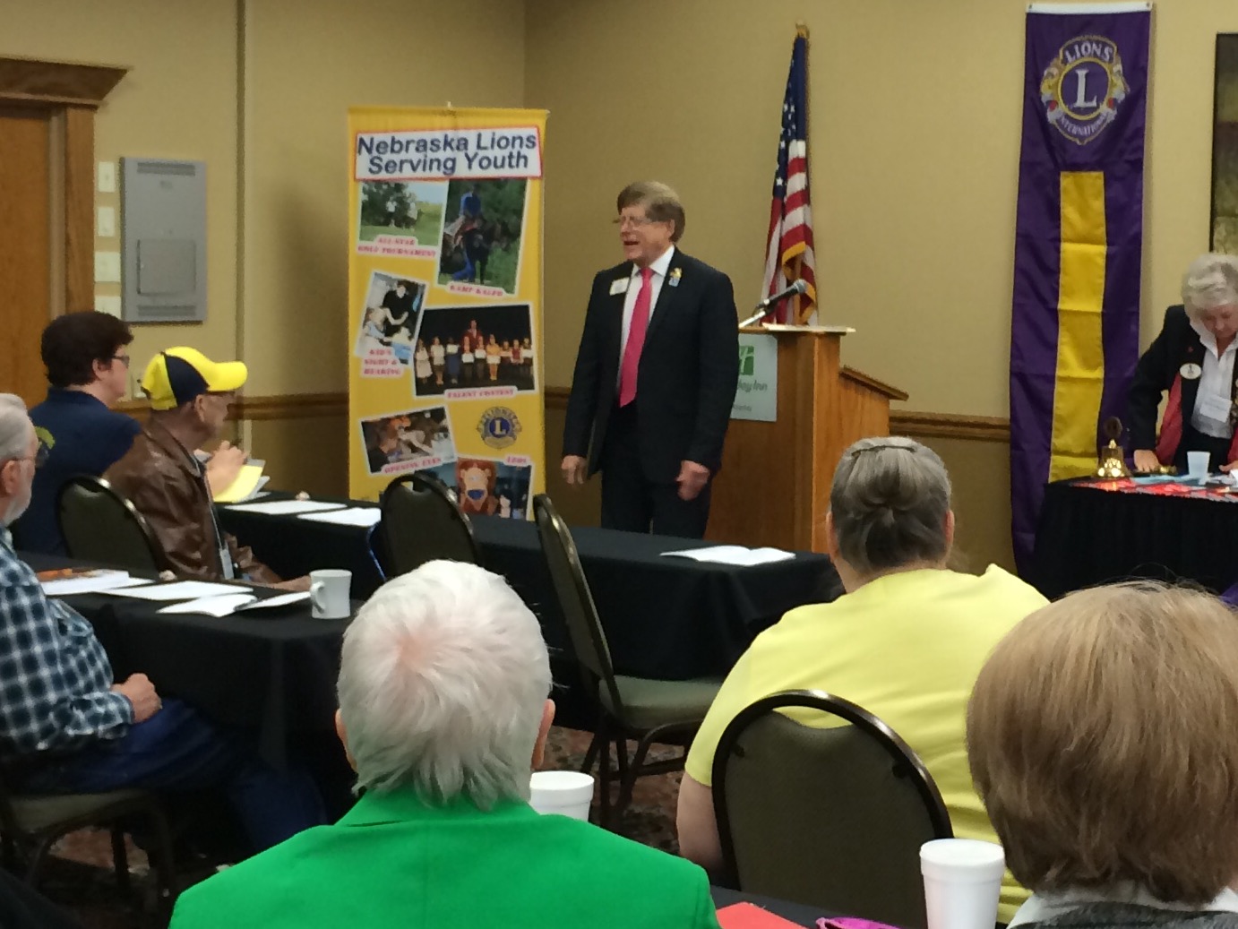PID Randy and Lion Kathy Heitmann came on Saturday morning to help PDG Randy Ritterbush promote the USA/Canada Forum being held in Omaha, NE next September. It was great to see them and we appreciated their words of encouragement.My presentation to the assembly occurred during the luncheon and both Kathy and I shared our passion for the One Shot, One Life Measles Initiative that brought in $1,800 from the Nebraska Lions. Match that with GAVI Funds and the Nebraska Lions saved over 3,600 children by providing measles vaccinations through the Lions Clubs International Foundation.