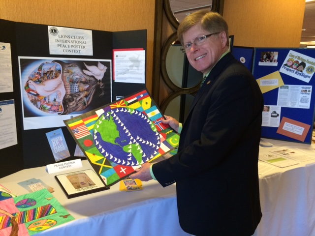 ID Robert reviews the peace poster entries. The displays were interesting and demonstrated the wide range of projects undertaken by the Lions of Single District 10.