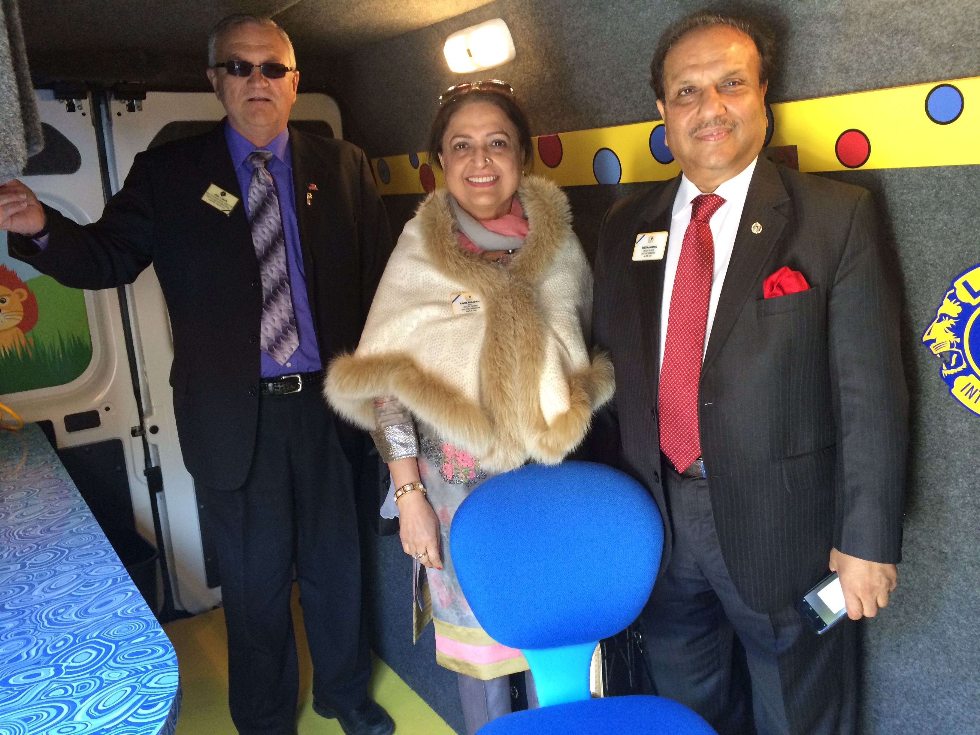 PID John Dahm shows the vision screening van sponsored by Lions Clubs International Foundation to the international guests.