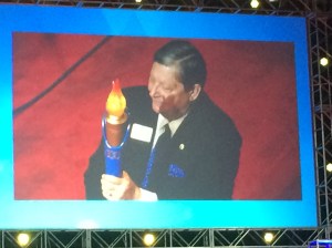 Centennial Committee Chairperson PIP Frank Moore leads the ceremony to extinguish the centennial convention flame and send the light of Lionism out to the world in the hands of the Leos and youth–the future leaders of LCI.