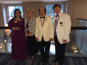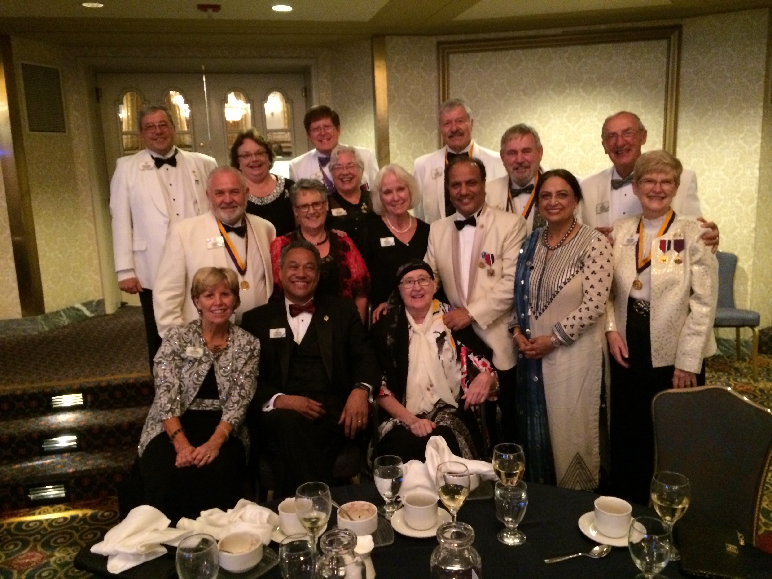 US IDs and spouses (with adopted Eric and Karen Carter from New Zealand) from the class of 2014-2016 with President-Elect Naresh and Lion Navita Aggarwal and the banquet.