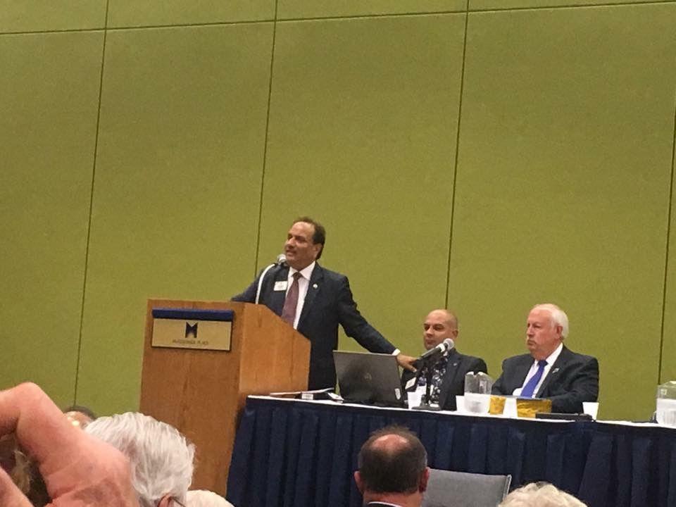 100th International President Corlew administers the oath of office to 101st International President Aggarwal.