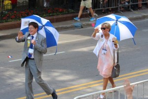 Having fun greeting the crowds at the parade.