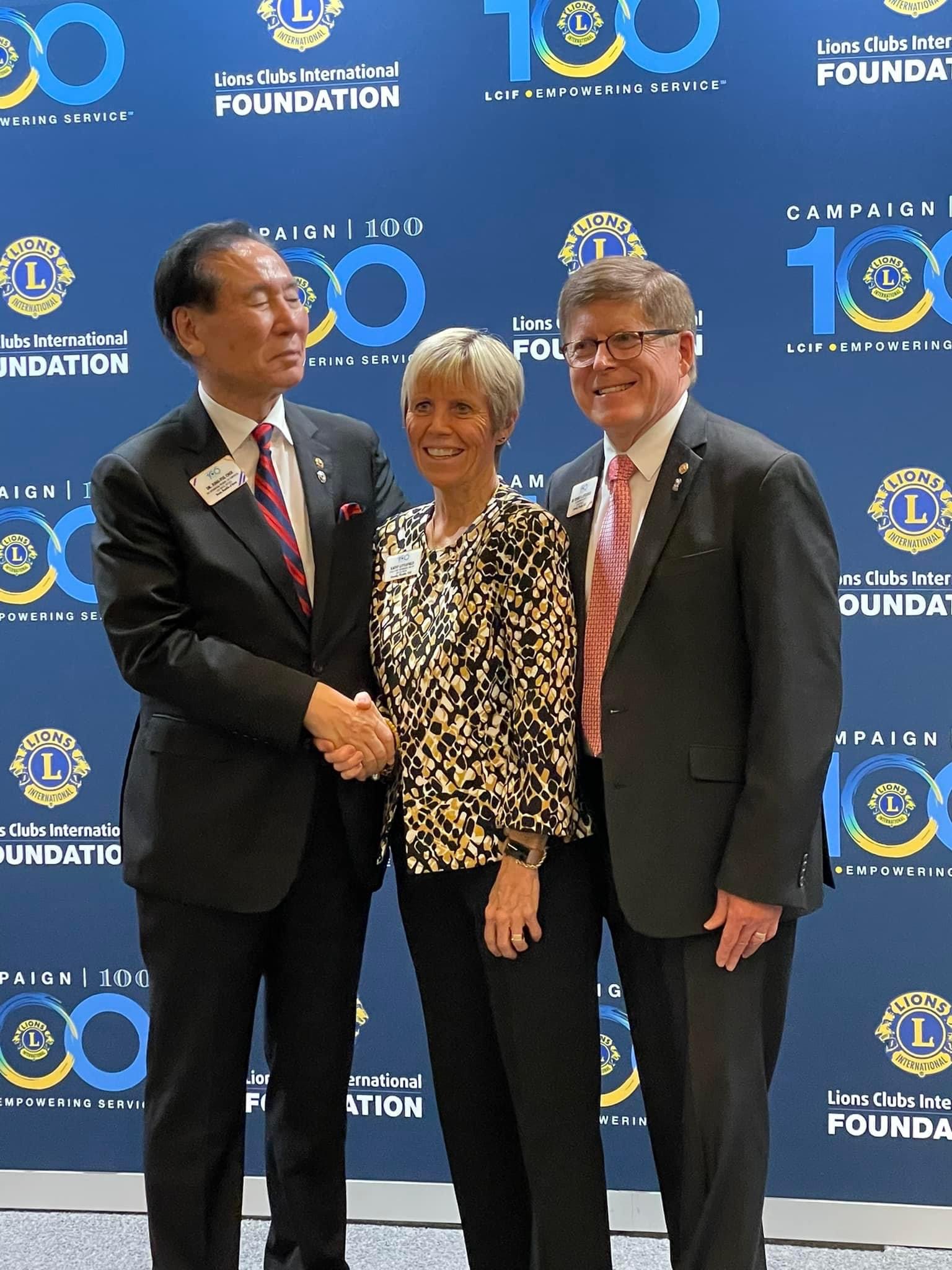 Past President Choi expressed his appreciation in 2022 to Lion Kathy and me for our ongoing support of Lions Clubs International Foundation at the first in-person convention following the pandemic that was held in Montreal, Canada.