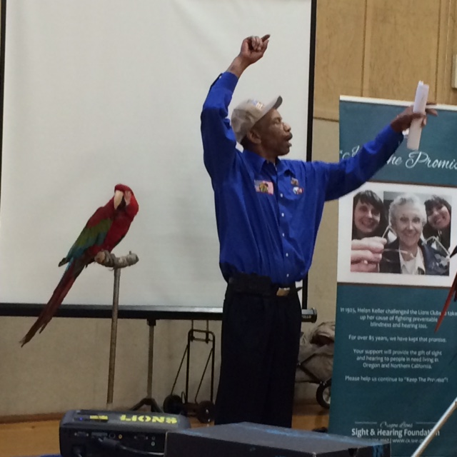 The final program of the day was an innovative partnership between veterans, Lions, and exotic birds. Christopher Wiggins is a veteran who has developed “Parrots for Patriots,” a program where exotic birds are partnered with veterans.