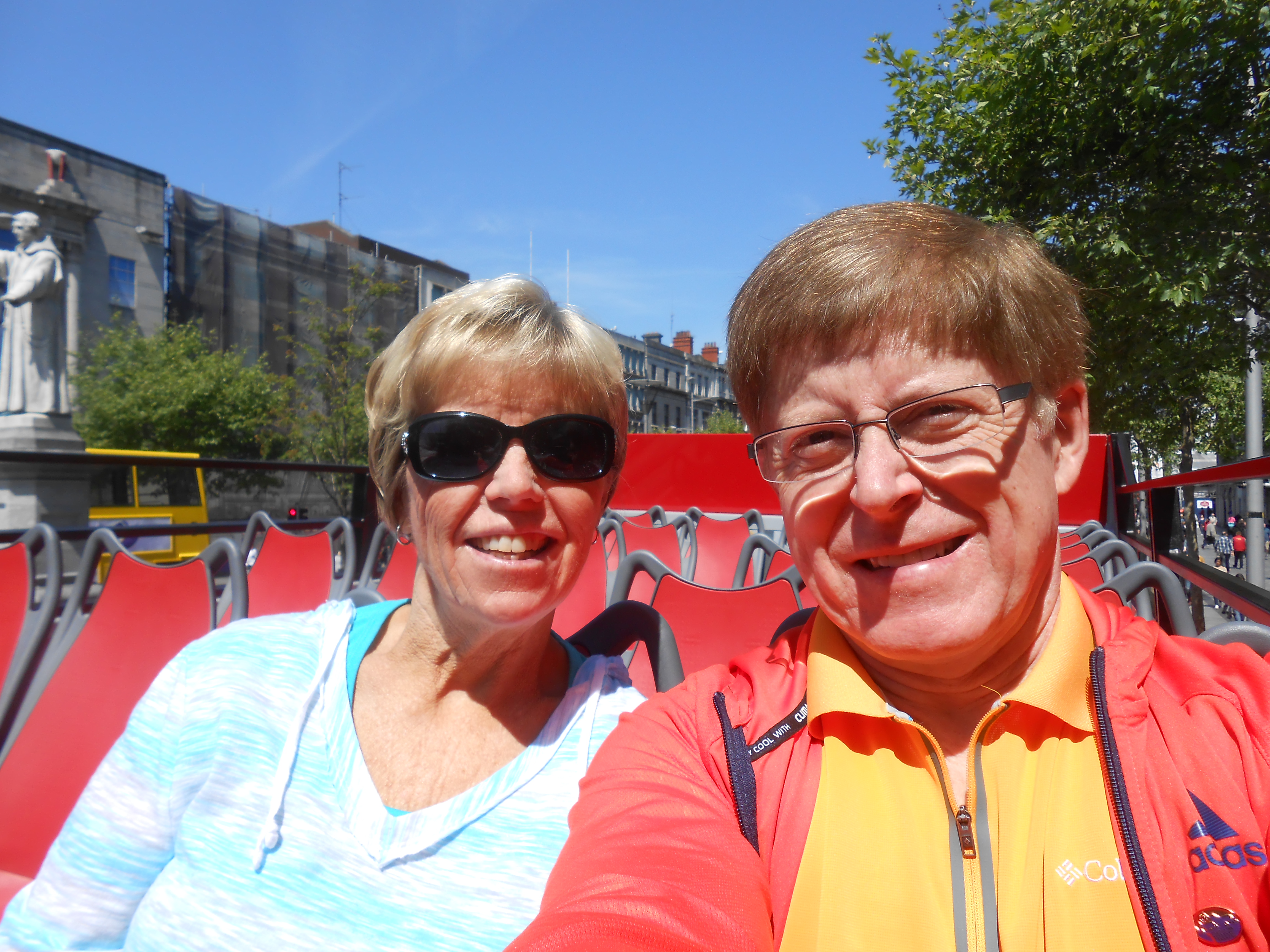taking the hop-on hop-off bus tour around Dublin;